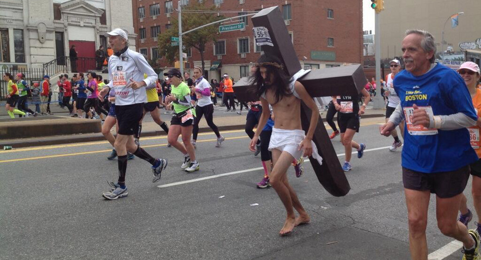 μετέχοντες στον αγώνα της Ν. Υόρκης. Ντυμένος ως Ιησούς, ξυπόλητος και
