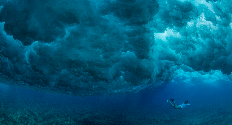 Μιτερμέιερ βουτάει κάτω από ένα τεράστιο κύμα προσπαθώντας να αποφύγει