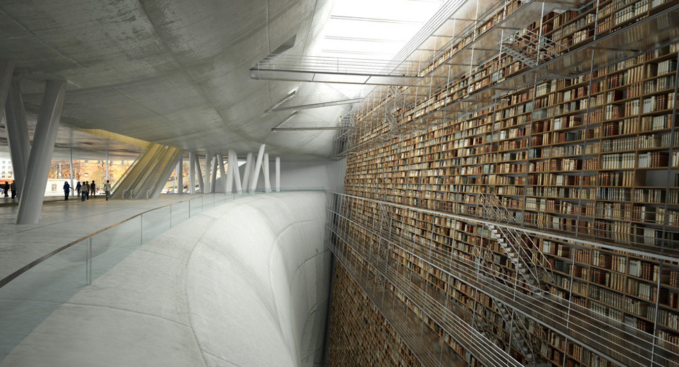Το σχέδιο δημιουργήθηκε για τον Διεθνή Διαγωνισμό Αρχιτεκτονικής, ως η νέα Δημόσια Βιβλιοθήκη της Στοκχόλμης. Η σύλληψη της ιδέας προέκυψε από την συνεργασία των Αρμέλ Νεουζέ, Ζακ Γκελέζ και Ολιβιέ Τσαρλς.
