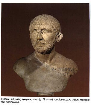 Ο τραγικός ποιητής Αγάθων επιχειρεί να σκιαγραφήσει το πρότυπο του πολιτικού άρχοντα, χαράσσοντας ένα πλαίσιο πολιτικών και ηθικών αρχών, η τήρηση του οποίου διασφαλίζει την εύρυθμη λειτουργία του πολιτεύματος και ενισχύει τον αμοιβαίο σεβασμό μεταξύ αρχόντων και αρχομένων.
