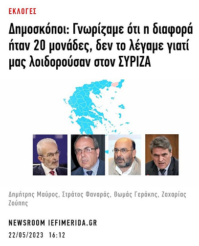 Πόσο πειστική είναι η δήλωση των δημοσκόπων ότι γνώριζαν για την διαφορά των 20 μονάδων, αλλά δεν την έλεγαν, επειδή λοιδορούνταν από τον ΣΥΡΙΖΑ;