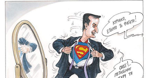 Αν, μάλιστα, από το εκλογομαγειρείο του καθεστώτος συνεκτιμήθηκαν οι αναλύσεις κάποιων σχολιαστών, οι οποίοι προέβλεπαν ότι θα σχηματισθεί οικουμενική κυβέρνηση για να επωμισθεί το πολιτικό κόστος από το ξεπούλημα (συγγνώμη, «συνεκμετάλλευση» ήθελα να πω) του Αιγαίου, τότε θα μπορούσε κάποιος να υποθέσει ότι, για το ξεκάρφωμα, η βελούδινη-ψηφιακή καλπονοθεία θα έπρεπε να μεθοδευθεί κατά τέτοιον τρόπο, ώστε να πέσει στάχτη στα μάτια των πολιτών, πράγμα που θα επιτυγχανόταν μόνο με την κατασκευή ενός αδιαφιλονίκητου «πρωθυπουργικού σούπερμαν», ο οποίος θα εμφανιζόταν ότι έχει το ελεύθερο να κάνει ό,τι γουστάρει και στα εθνικά θέματα: