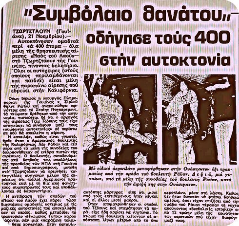 Στις 18 Νοεμβρίου 1978, αυτός ο «διαβολικός ιερέας» οδήγησε σε μαζική αυτοκτονία περισσότερα από 900 άτομα με τη λήψη κυανιδίου, ενώ δηλητηρίασε με αναψυκτικό υδροκυάνιο, το οποίο είχε ρίξει σε αναψυκτικό Koll-Aid, τον Leo Ryan (μέλος του Κογκρέσου) και τη συνοδεία του που, μετά από έκκληση συγγενών για βοήθεια, επισκέφθηκαν το ανωτέρω αγρόκτημα.